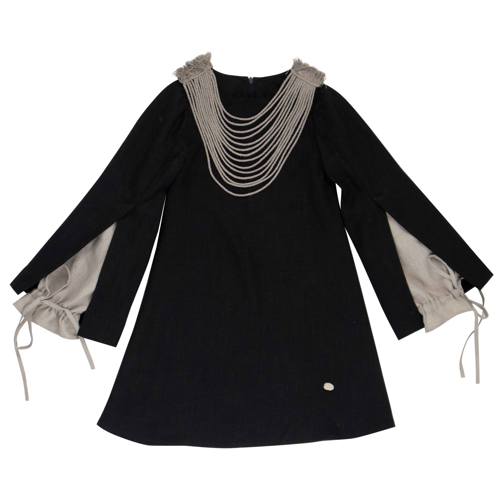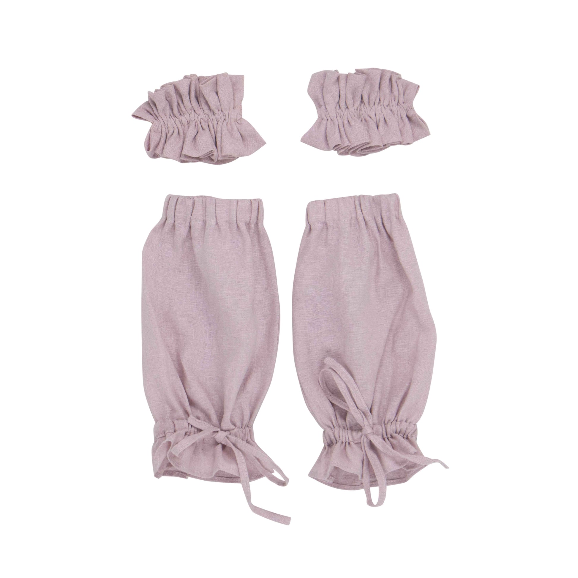 Case 2: Natural linen sleeves with ruffles at the ends and a multi-string collar of linen from the shoulders.