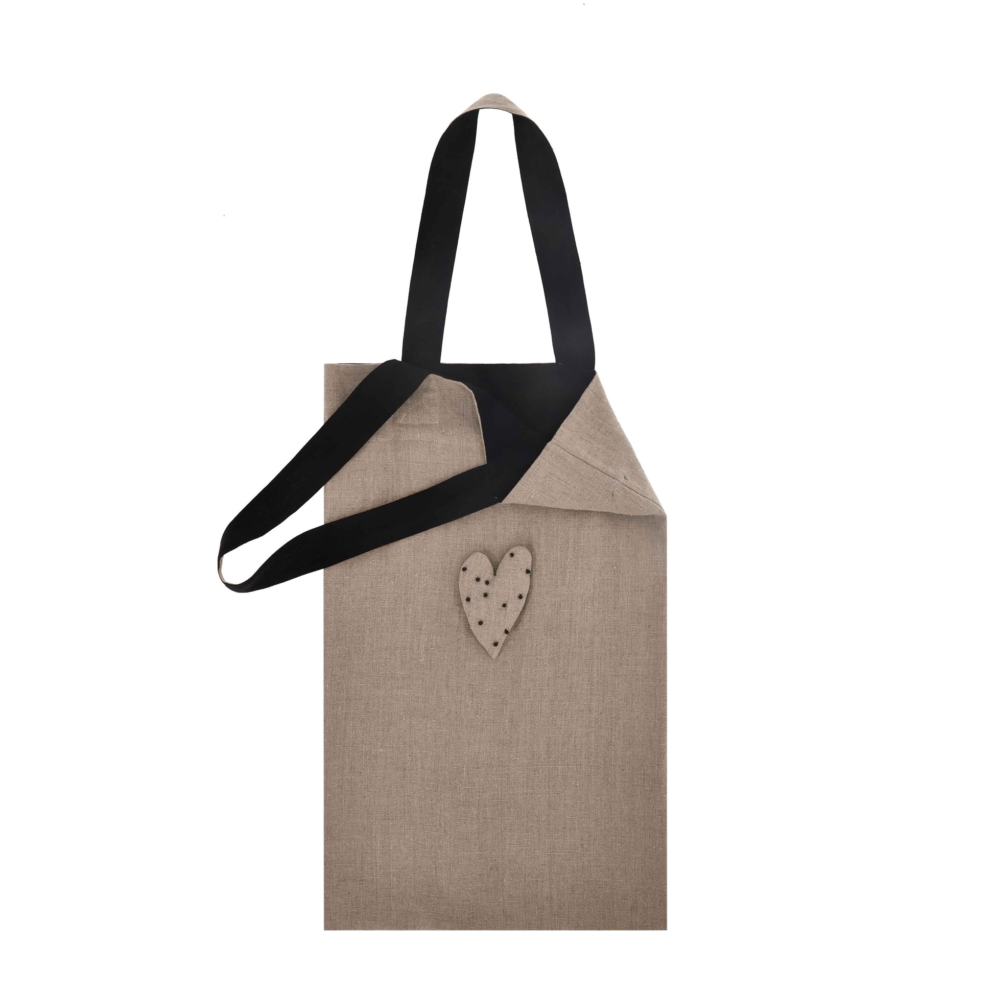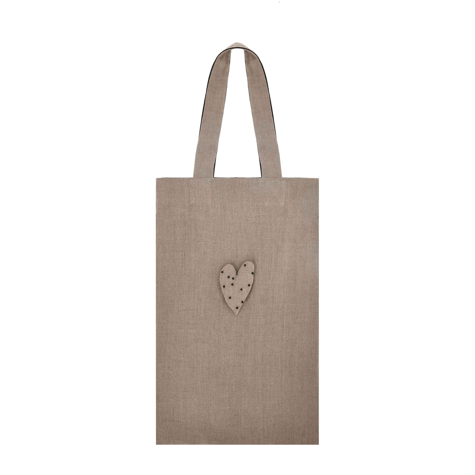 Linen UPA LOVE bag with a padded heart appliqué, beaded with lava beads. Available in Size M (37x57cm) in the photo and also in Size S (30x42cm).